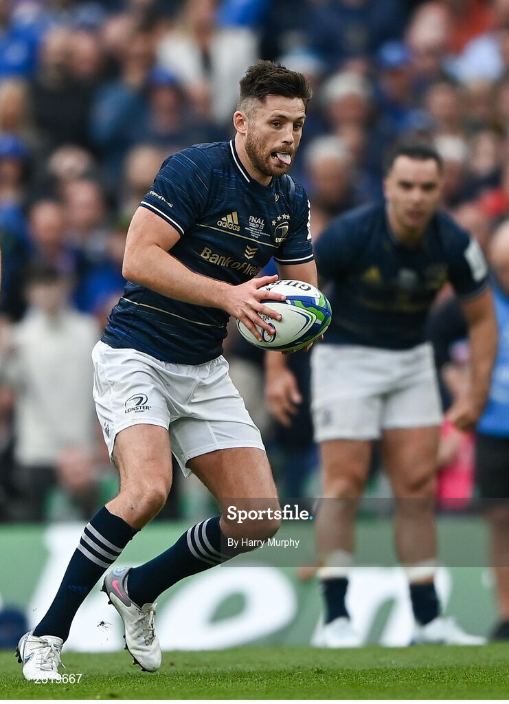 20 May 2023; Ross Byrne of Leinster during the Heineken Champions Cup final match between Leinster and La Rochelle at the Aviva Stadium in Dublin. Photo by Harry Murphy/Sportsfile