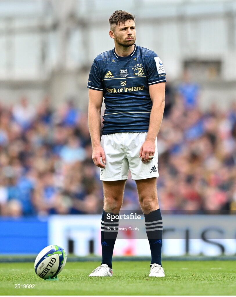 20 May 2023; Ross Byrne of Leinster during the Heineken Champions Cup Final match between Leinster and La Rochelle at Aviva Stadium in Dublin. Photo by Ramsey Cardy/Sportsfile