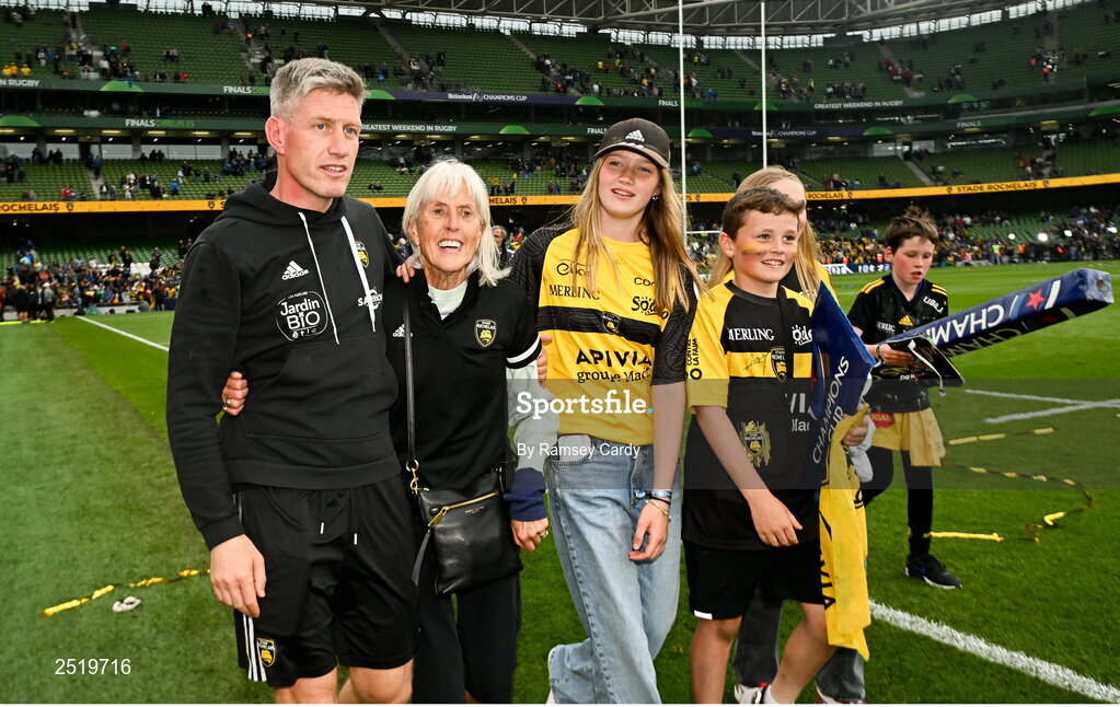 20 May 2023; La Rochelle head coach Ronan O'Gara, with his mother Joan, after the Heineken Champions Cup Final match between Leinster and La Rochelle at Aviva Stadium in Dublin. Photo by Ramsey Cardy/Sportsfile