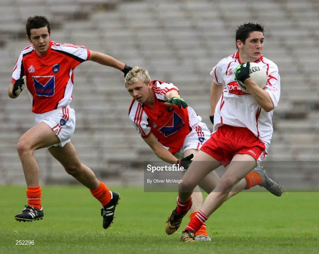 17 June 2007; Ronan McNabb, Tyrone, in action against Francis Hanratty, Armagh. ESB Ulster Minor Football Championship Semi-Final, Tyrone v Armagh, St Tighearnach's Park, Clones, Co Monaghan. Picture credit: Oliver McVeigh / SPORTSFILE