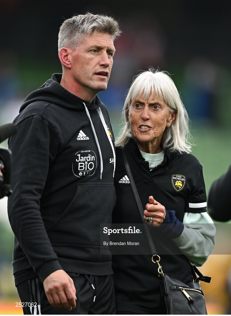 20 May 2023; La Rochelle head coach Ronan O'Gara with his mother Joan after the Heineken Champions Cup Final match between Leinster and La Rochelle at Aviva Stadium in Dublin. Photo by Brendan Moran/Sportsfile