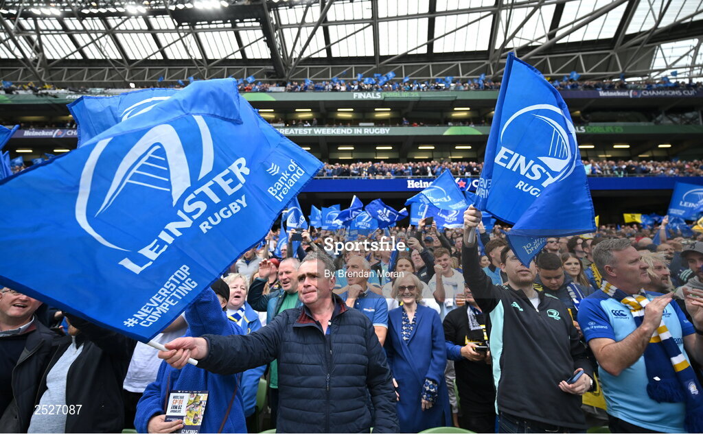 20 May 2023; Leinster supporters during the Heineken Champions Cup Final match between Leinster and La Rochelle at Aviva Stadium in Dublin. Photo by Brendan Moran/Sportsfile