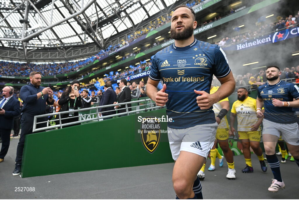 20 May 2023; Jamison Gibson-Park of Leinster runs onto the pitch before the Heineken Champions Cup Final match between Leinster and La Rochelle at Aviva Stadium in Dublin. Photo by Brendan Moran/Sportsfile