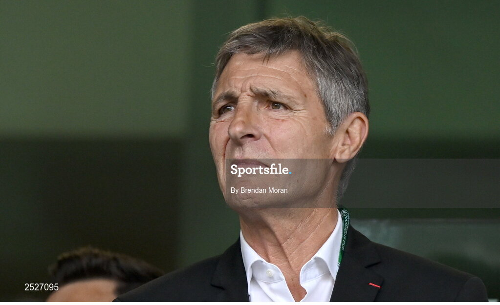20 May 2023; La Rochelle president Vincent Merling during the Heineken Champions Cup Final match between Leinster and La Rochelle at Aviva Stadium in Dublin. Photo by Brendan Moran/Sportsfile