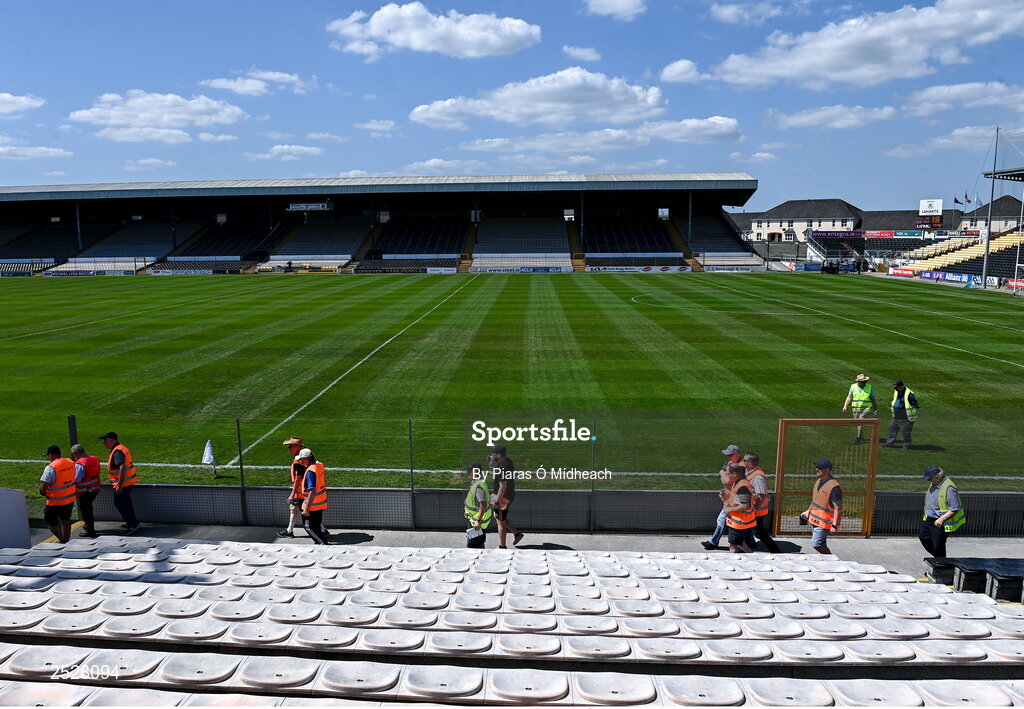 3 June 2023; Stewards make their way to their pre-match meeting before the GAA Football All-Ireland Senior Championship Round 2 match between Kildare and Dublin at UPMC Nowlan Park in Kilkenny. Photo by Piaras Ó Mídheach/Sportsfile