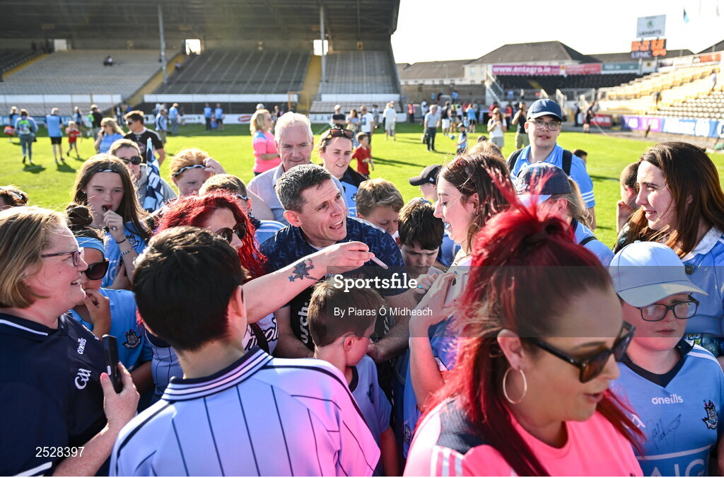 3 June 2023; Dublin goalkeeper Stephen Cluxton with supporters after his side's victory in the GAA Football All-Ireland Senior Championship Round 2 match between Kildare and Dublin at UPMC Nowlan Park in Kilkenny. Photo by Piaras Ó Mídheach/Sportsfile
