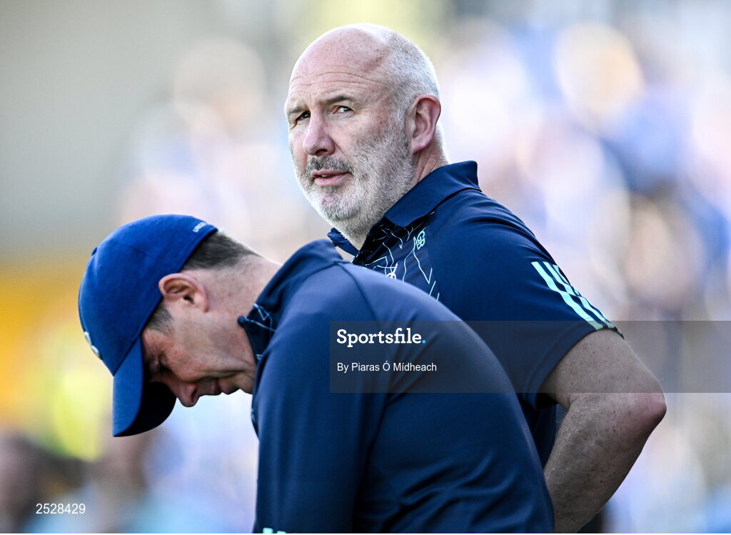 3 June 2023; Kildare manager Glenn Ryan alongside his selector Anthony Rainbow, left, during the GAA Football All-Ireland Senior Championship Round 2 match between Kildare and Dublin at UPMC Nowlan Park in Kilkenny. Photo by Piaras Ó Mídheach/Sportsfile