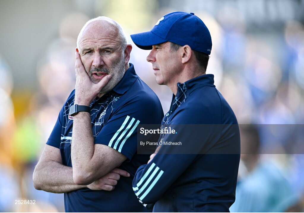 3 June 2023; Kildare manager Glenn Ryan alongside his selector Anthony Rainbow, right, during the GAA Football All-Ireland Senior Championship Round 2 match between Kildare and Dublin at UPMC Nowlan Park in Kilkenny. Photo by Piaras Ó Mídheach/Sportsfile