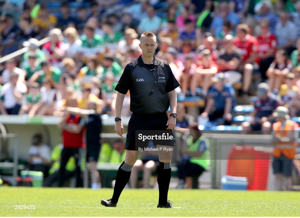 4 June 2023; Referee Michael Kennedy during the Electric Ireland GAA Hurling All-Ireland Minor Championship Final match between Clare and Galway at FBD Semple Stadium in Thurles, Tipperary. Photo by Michael P Ryan/Sportsfile