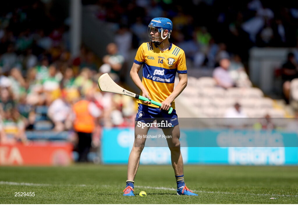 4 June 2023; Mark O'Brien of Clare during the Electric Ireland GAA Hurling All-Ireland Minor Championship Final match between Clare and Galway at FBD Semple Stadium in Thurles, Tipperary. Photo by Michael P Ryan/Sportsfile