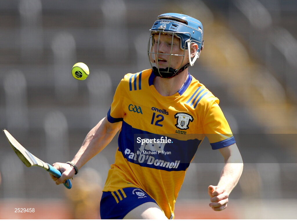 4 June 2023; Sean Arthur of Clare during the Electric Ireland GAA Hurling All-Ireland Minor Championship Final match between Clare and Galway at FBD Semple Stadium in Thurles, Tipperary. Photo by Michael P Ryan/Sportsfile