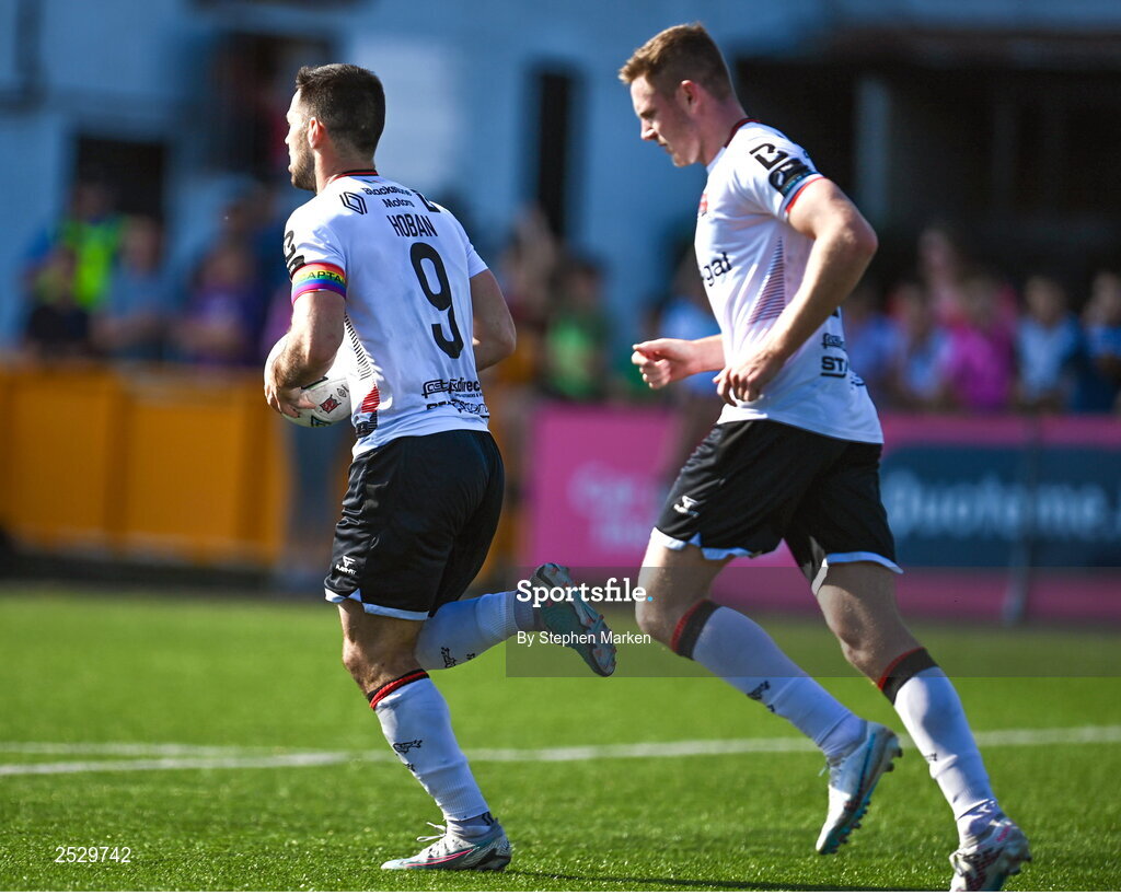 5 June 2023; Patrick Hoban of Dundalk after scoring his side's first goal from a penalty during the SSE Airtricity Men's Premier Division match between Dundalk and UCD at Oriel Park in Dundalk, Louth. Photo by Stephen Marken/Sportsfile