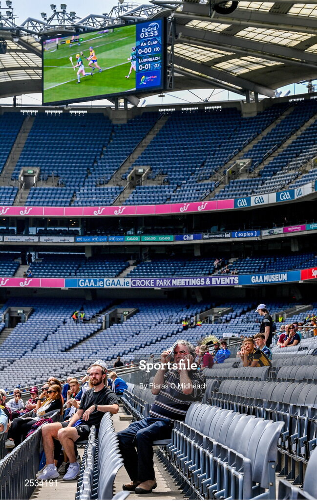 11 June 2023; Spectators watch the Munster SHC Final on the big screens during the Leinster GAA Hurling Championship Final match between Kilkenny and Galway at Croke Park in Dublin. Photo by Piaras Ó Mídheach/Sportsfile