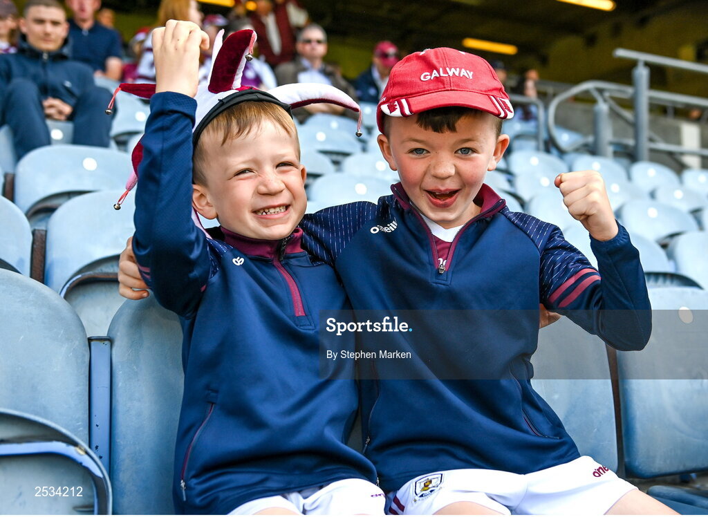11 June 2023; Ronan, age 5, and Donnacha McHugh, age 7, from Ahascragh, Galway before the Leinster GAA Hurling Senior Championship Final match between Kilkenny and Galway at Croke Park in Dublin. Photo by Stephen Marken/Sportsfile