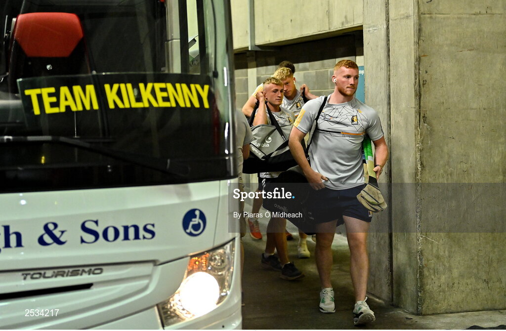 11 June 2023; Paddy Mullen of Kilkenny arrives for the Leinster GAA Hurling Championship Final match between Kilkenny and Galway at Croke Park in Dublin. Photo by Piaras Ó Mídheach/Sportsfile