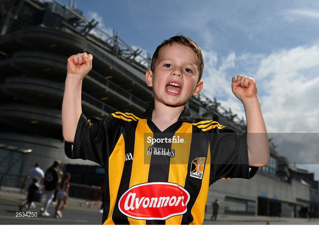 11 June 2023; Young Kilkenny supporter Dawson Cawley, age 5, before the Leinster GAA Hurling GAA Championship Final match between Kilkenny and Galway at Croke Park in Dublin. Photo by Seb Daly/Sportsfile