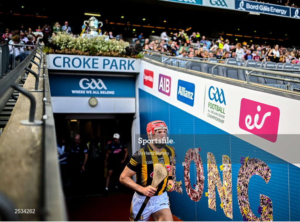 11 June 2023; Cillian Buckley of Kilkenny runs out before the Leinster GAA Hurling Senior Championship Final match between Kilkenny and Galway at Croke Park in Dublin. Photo by Harry Murphy/Sportsfile