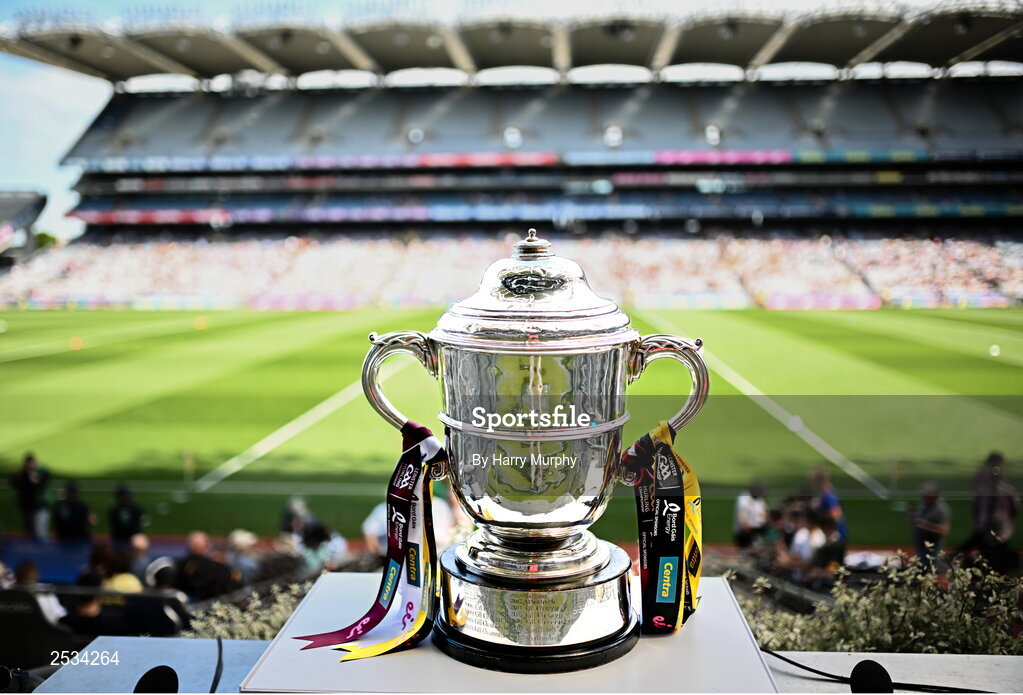 11 June 2023; The Bob O'Keeffe Cup is seen before the Leinster GAA Hurling Senior Championship Final match between Kilkenny and Galway at Croke Park in Dublin. Photo by Harry Murphy/Sportsfile