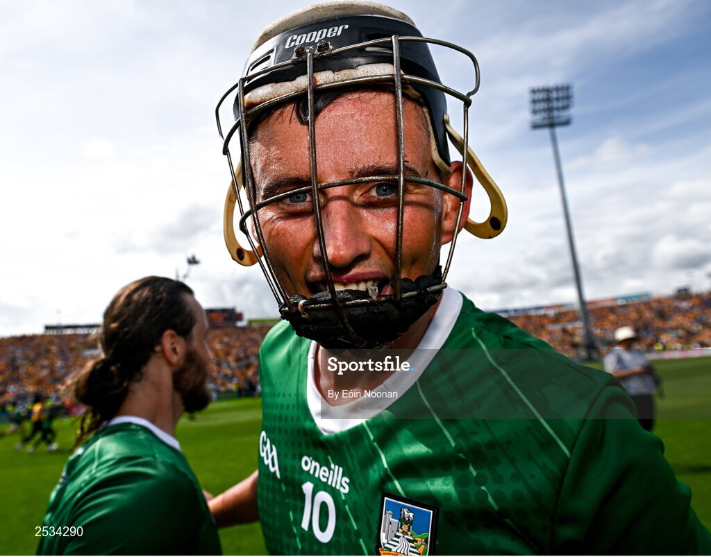 11 June 2023; Gearoid Hegarty of Limerick celebrates at the final whistle after the Munster GAA Hurling Championship Final match between Clare and Limerick at TUS Gaelic Grounds in Limerick. Photo by Eóin Noonan/Sportsfile