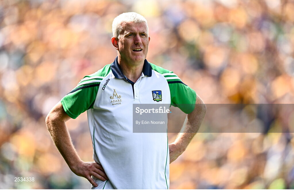 11 June 2023; Limerick manager John Kiely during the Munster GAA Hurling Championship Final match between Clare and Limerick at TUS Gaelic Grounds in Limerick. Photo by Eóin Noonan/Sportsfile