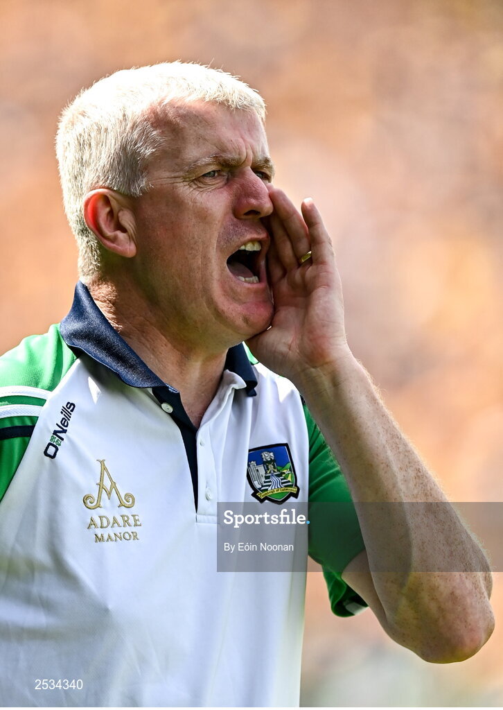 11 June 2023; Limerick manager John Kiely during the Munster GAA Hurling Championship Final match between Clare and Limerick at TUS Gaelic Grounds in Limerick. Photo by Eóin Noonan/Sportsfile