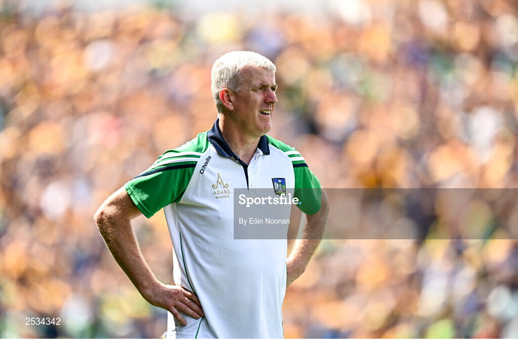 11 June 2023; Limerick manager John Kiely during the Munster GAA Hurling Championship Final match between Clare and Limerick at TUS Gaelic Grounds in Limerick. Photo by Eóin Noonan/Sportsfile