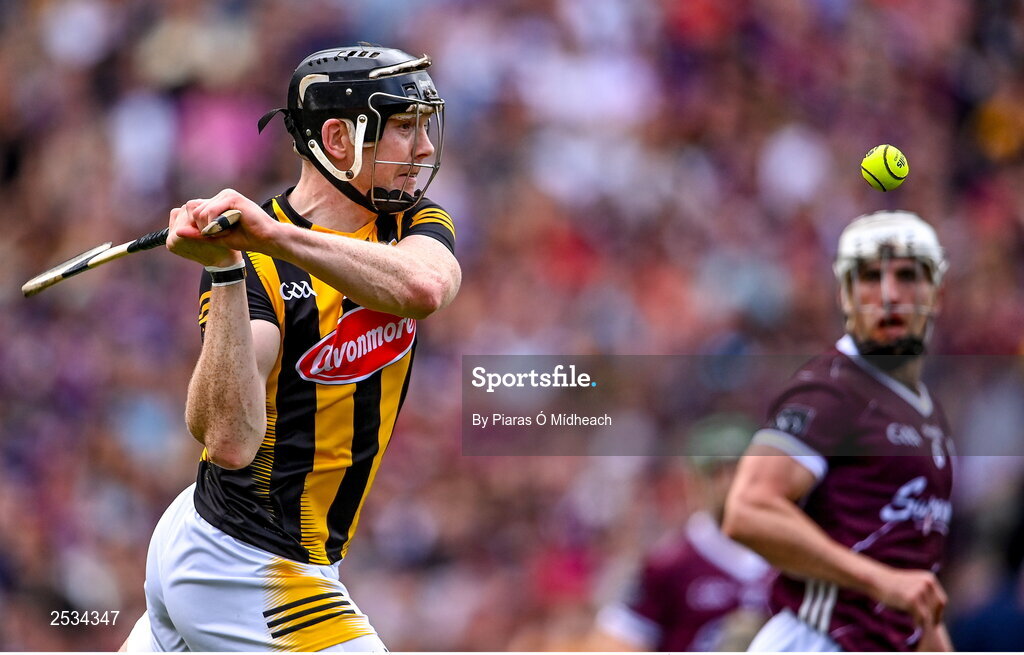 11 June 2023; Walter Walsh of Kilkenny shoots to score his side's second goal during the Leinster GAA Hurling Senior Championship Final match between Kilkenny and Galway at Croke Park in Dublin. Photo by Piaras Ó Mídheach/Sportsfile
