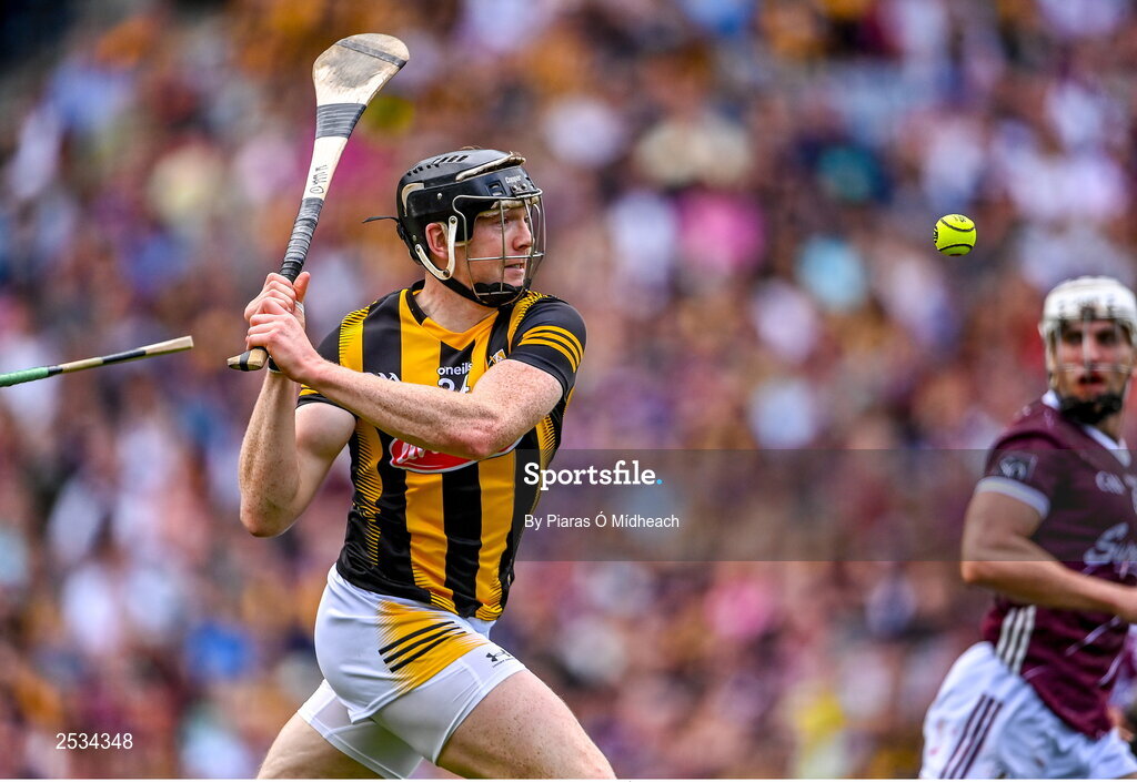11 June 2023; Walter Walsh of Kilkenny shoots to score his side's second goal during the Leinster GAA Hurling Senior Championship Final match between Kilkenny and Galway at Croke Park in Dublin. Photo by Piaras Ó Mídheach/Sportsfile
