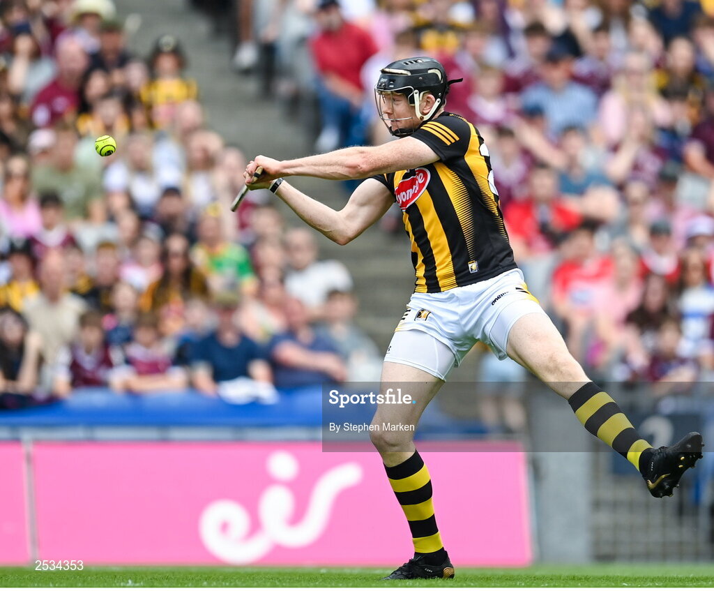 11 June 2023; Walter Walsh of Kilkenny shoots to score his side's second goal during the Leinster GAA Hurling Senior Championship Final match between Kilkenny and Galway at Croke Park in Dublin. Photo by Stephen Marken/Sportsfile