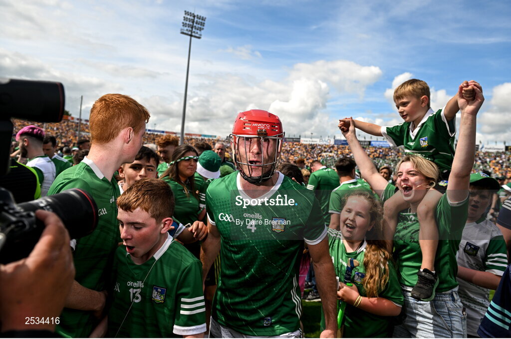 11 June 2023; Barry Nash of Limerick celebrates after the Munster GAA Hurling Championship Final match between Clare and Limerick at TUS Gaelic Grounds in Limerick. Photo by Daire Brennan/Sportsfile