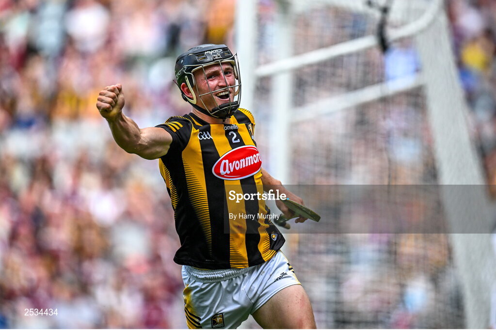 11 June 2023; Mikey Butler of Kilkenny celebrates after scoring his side's third goal during the Leinster GAA Hurling Senior Championship Final match between Kilkenny and Galway at Croke Park in Dublin. Photo by Harry Murphy/Sportsfile