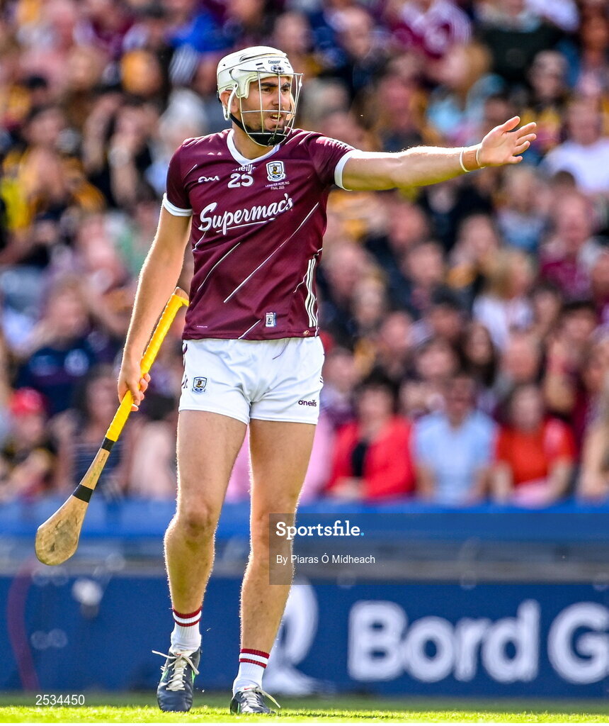 11 June 2023; Jason Flynn of Galway after scoring his side's second goal during the Leinster GAA Hurling Senior Championship Final match between Kilkenny and Galway at Croke Park in Dublin. Photo by Piaras Ó Mídheach/Sportsfile