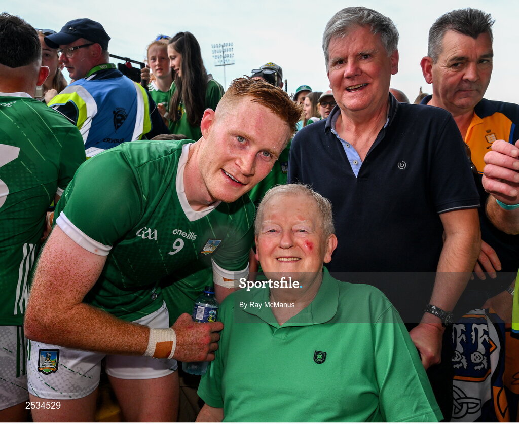 11 June 2023; Publican Charlie Chawke and William O'Donoghue of Limerick after the Munster GAA Hurling Championship Final match between Clare and Limerick at TUS Gaelic Grounds in Limerick. Photo by Ray McManus/Sportsfile