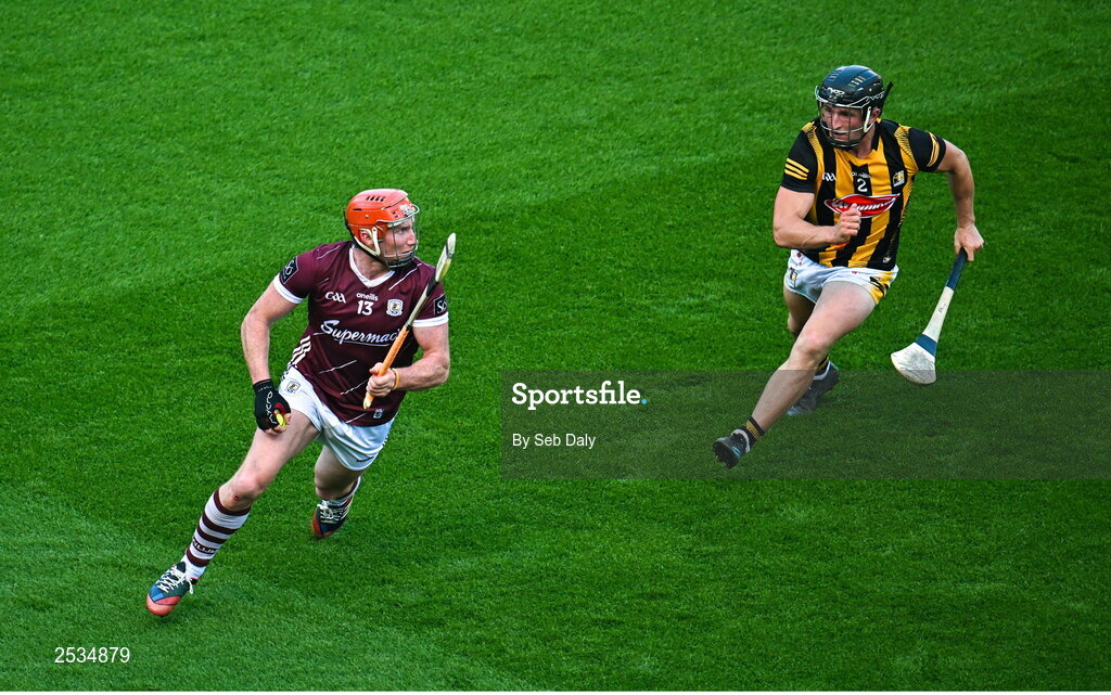 11 June 2023; Conor Whelan of Galway in action against Mikey Butler of Kilkenny during the Leinster GAA Hurling Senior Championship Final match between Kilkenny and Galway at Croke Park in Dublin. Photo by Seb Daly/Sportsfile