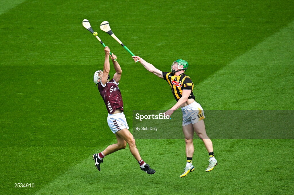 11 June 2023; Daithí Burke of Galway in action against Martin Keoghan of Kilkenny during the Leinster GAA Hurling Senior Championship Final match between Kilkenny and Galway at Croke Park in Dublin. Photo by Seb Daly/Sportsfile