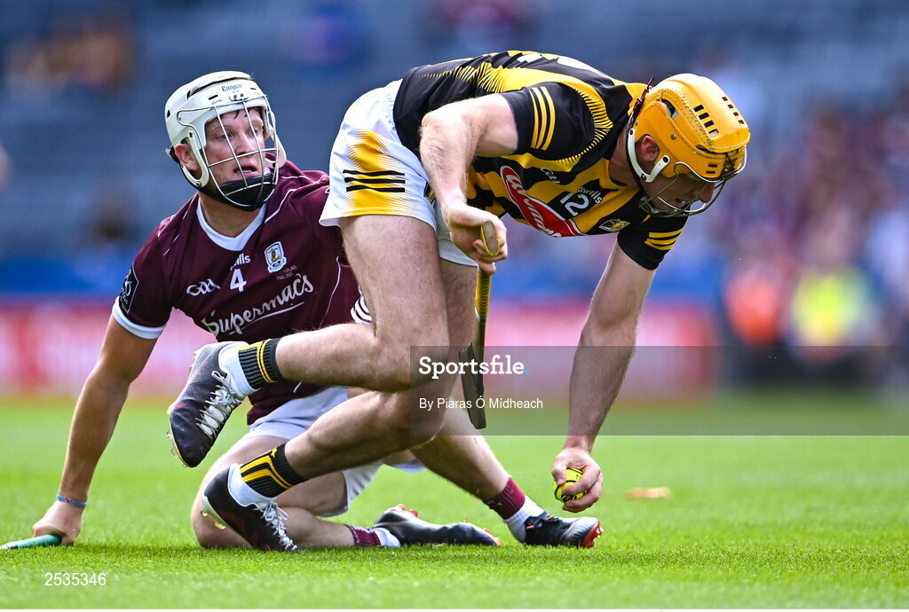 11 June 2023; Billy Ryan of Kilkenny gets away from Darren Morrissey of Galway during the Leinster GAA Hurling Senior Championship Final match between Kilkenny and Galway at Croke Park in Dublin. Photo by Piaras Ó Mídheach/Sportsfile