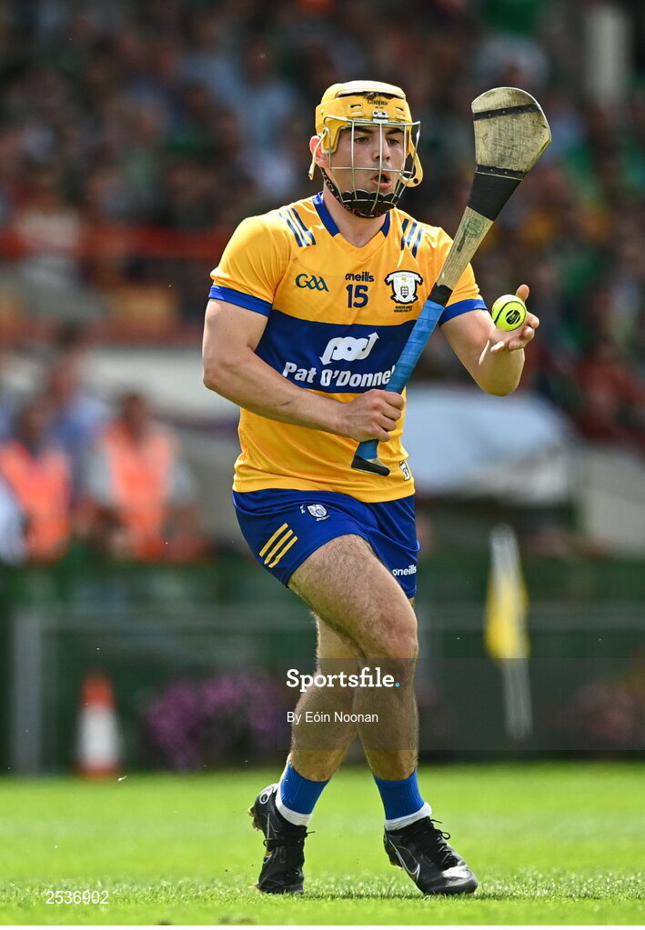 11 June 2023; Mark Rodgers of Clare during the Munster GAA Hurling GAA Championship Final match between Clare and Limerick at TUS Gaelic Grounds in Limerick. Photo by Eóin Noonan/Sportsfile