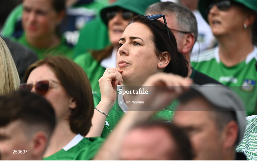 11 June 2023; A Limerick supporter during the Munster GAA Hurling GAA Championship Final match between Clare and Limerick at TUS Gaelic Grounds in Limerick. Photo by Eóin Noonan/Sportsfile