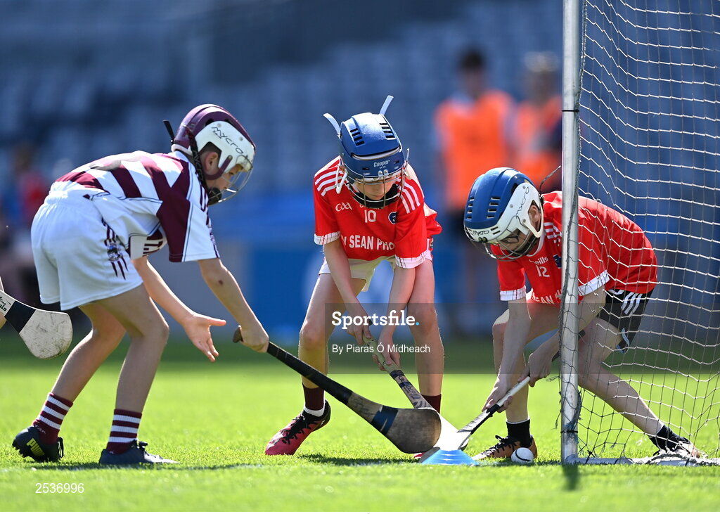 14 June 2023; Action from Sleacht Néill, Derry, and SN Bhaile Mhic Airt in Waterford during the GAAgaeilge Go Games at Croke Park in Dublin. Photo by Piaras Ó Mídheach/Sportsfile
