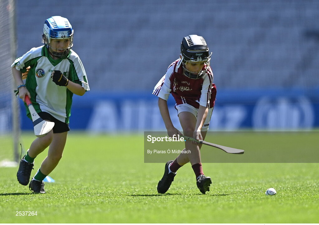 14 June 2023; Action from Scoil Santain in Tallaght, Dublin, and Maigh Cuilinn, Galway, during the GAAgaeilge Go Games at Croke Park in Dublin. Photo by Piaras Ó Mídheach/Sportsfile