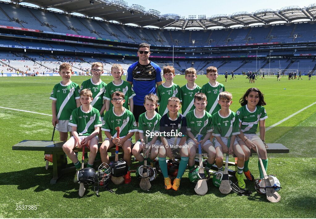 14 June 2023; The Maigh Cuilinn, Galway, squad with GAA Ambasadóir na Gaeilge Paul Flanagan during the GAAgaeilge Go Games at Croke Park in Dublin. Photo by Piaras Ó Mídheach/Sportsfile