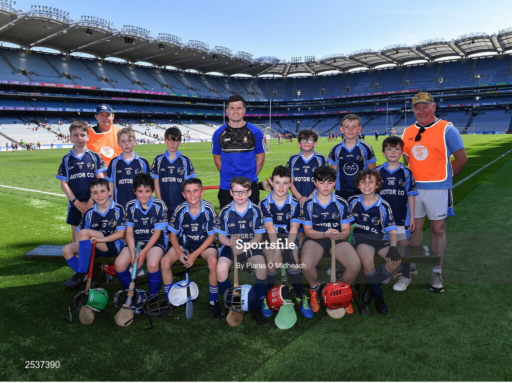 14 June 2023; The Na Gaeil Óga, Dublin, squad with GAA Ambasadóir na Gaeilge Paul Flanagan during the GAAgaeilge Go Games at Croke Park in Dublin. Photo by Piaras Ó Mídheach/Sportsfile