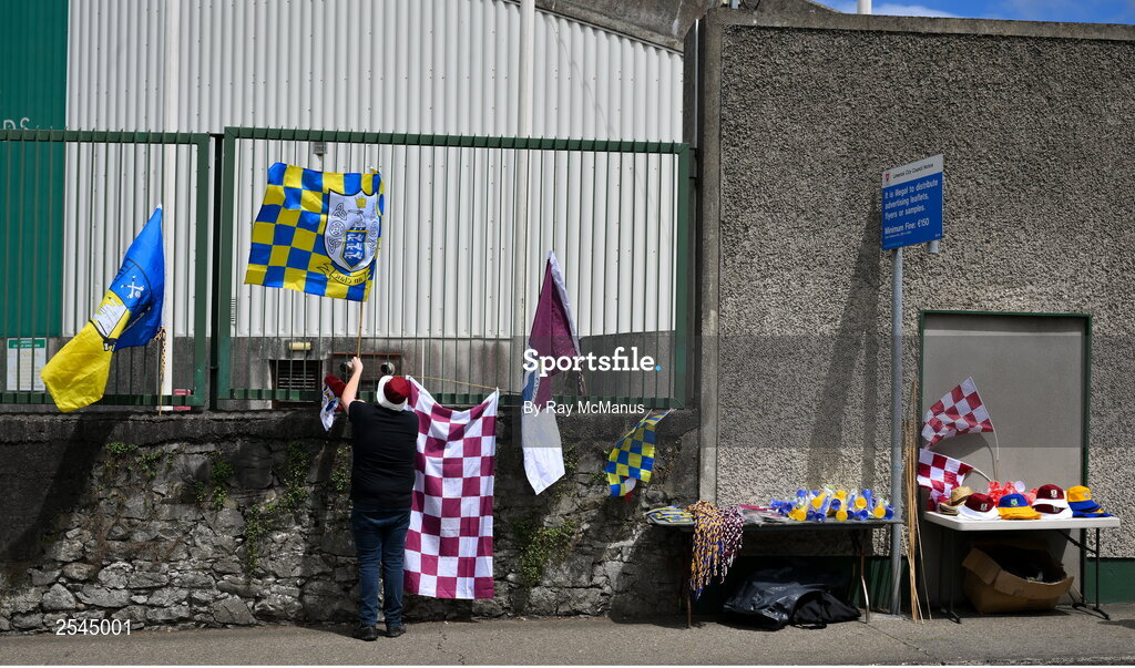 24 June 2023; A street trader sets out his stall, on the Ennis Road, before the GAA Hurling All-Ireland Senior Championship Quarter Final match between Galway and Tipperary at TUS Gaelic Grounds in Limerick. Photo by Ray McManus/Sportsfile