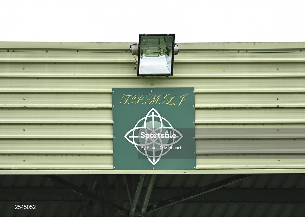 24 June 2023; A sign on the main stand at the GAA Hurling All-Ireland Senior Championship Quarter Final match between Clare and Dublin at TUS Gaelic Grounds in Limerick. Photo by Piaras Ó Mídheach/Sportsfile