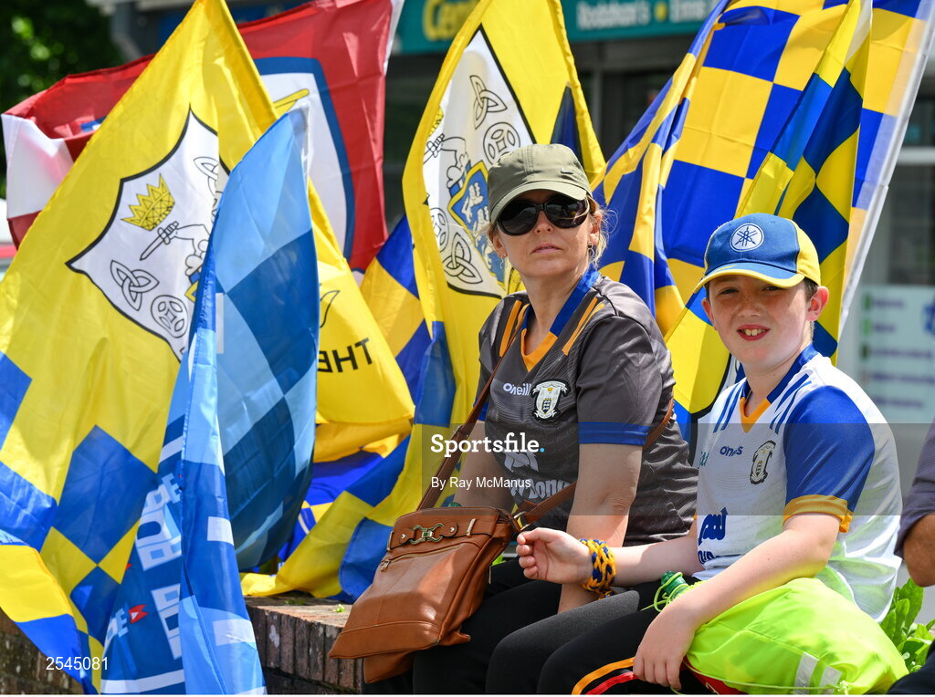 24 June 2023; Martina and Thomas Brennan from Inagh before the GAA Hurling All-Ireland Senior Championship Quarter Final match between Clare and Dublin at TUS Gaelic Grounds in Limerick. Photo by Ray McManus/Sportsfile