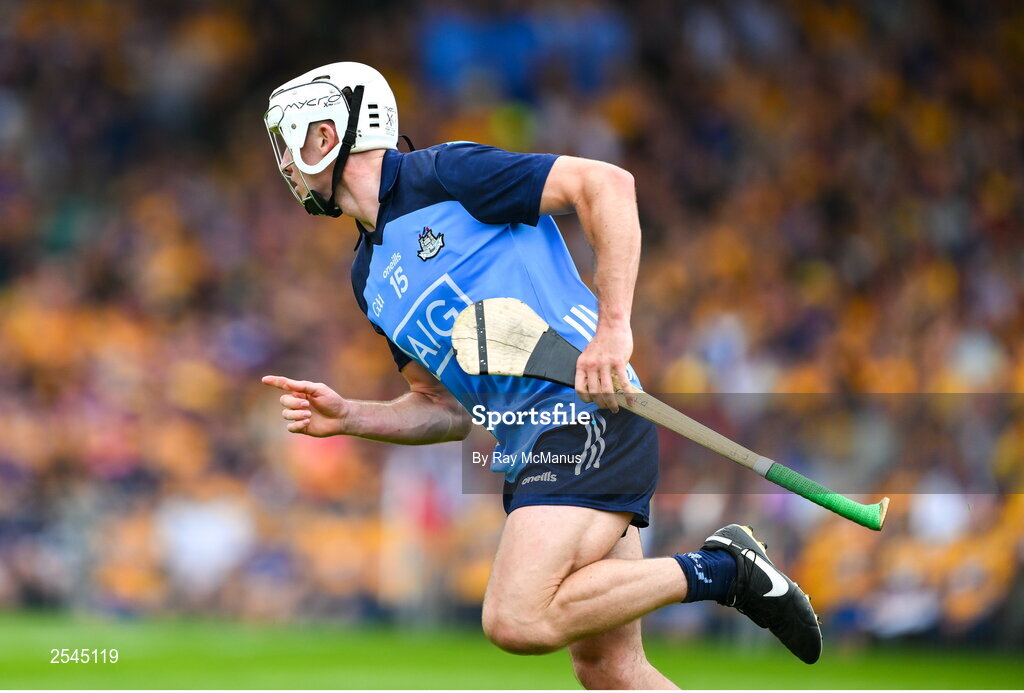 24 June 2023; Darragh Power of Dublin celebrates scoring a goal in the 18th minute during the GAA Hurling All-Ireland Senior Championship Quarter Final match between Clare and Dublin at TUS Gaelic Grounds in Limerick. Photo by Ray McManus/Sportsfile