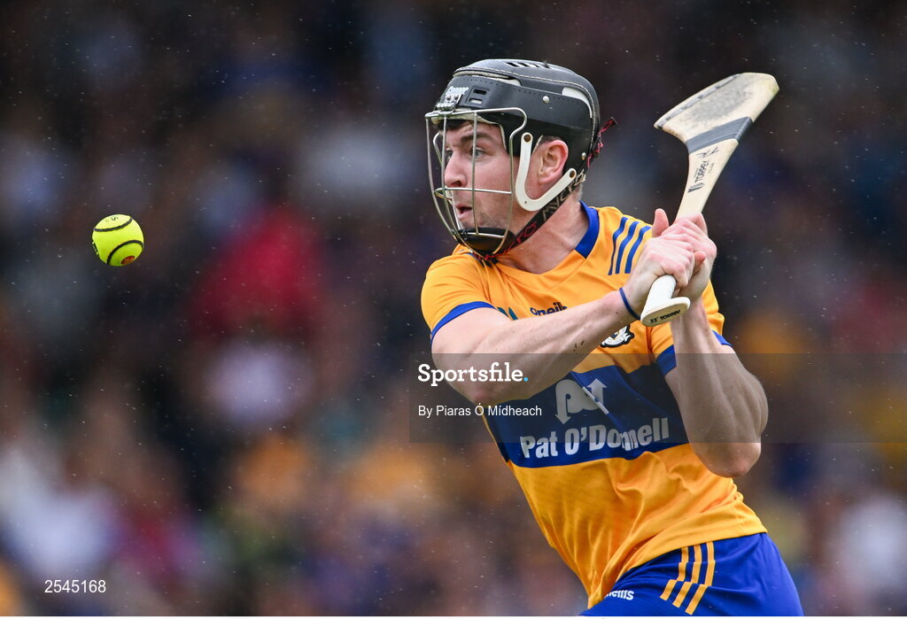 24 June 2023; Tony Kelly of Clare shoots to score his side's third goal during the GAA Hurling All-Ireland Senior Championship Quarter Final match between Clare and Dublin at TUS Gaelic Grounds in Limerick. Photo by Piaras Ó Mídheach/Sportsfile