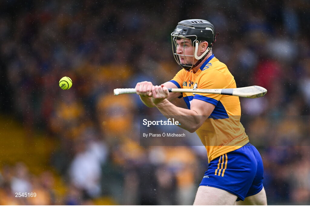 24 June 2023; Tony Kelly of Clare shoots to score his side's third goal during the GAA Hurling All-Ireland Senior Championship Quarter Final match between Clare and Dublin at TUS Gaelic Grounds in Limerick. Photo by Piaras Ó Mídheach/Sportsfile