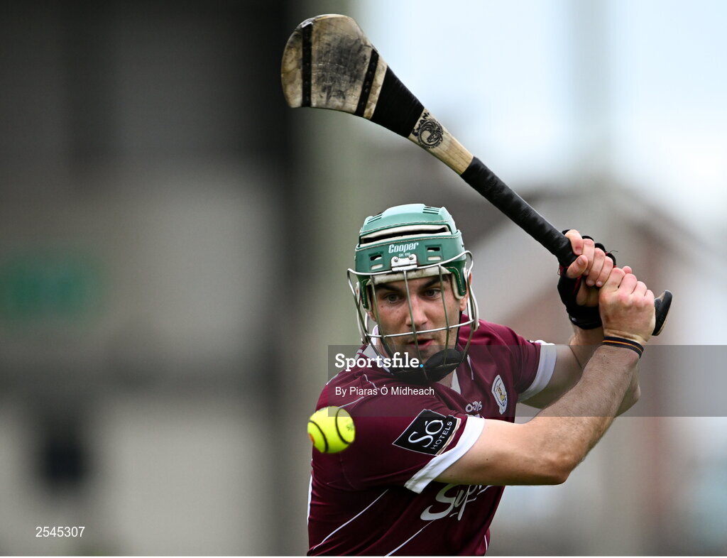 24 June 2023; Evan Niland of Galway takes a free during the GAA Hurling All-Ireland Senior Championship Quarter Final match between Galway and Tipperary at TUS Gaelic Grounds in Limerick. Photo by Piaras Ó Mídheach/Sportsfile