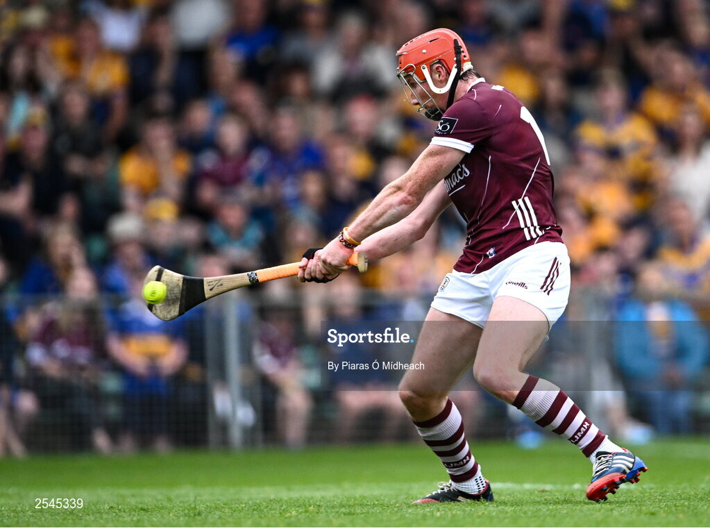 24 June 2023; Conor Whelan of Galway takes a shot that was saved by Tipperary goalkeeper Rhys Shelly, not pictured, during the GAA Hurling All-Ireland Senior Championship Quarter Final match between Galway and Tipperary at TUS Gaelic Grounds in Limerick. Photo by Piaras Ó Mídheach/Sportsfile